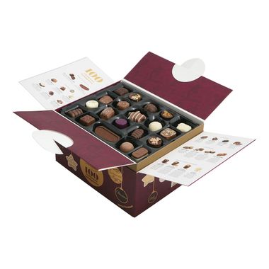 This lovely selection box contains 395g of Green and Black’s decadent organic chocolate. This one is a tasting box, containing 24 miniature bars and even some chocolate tasting notes.